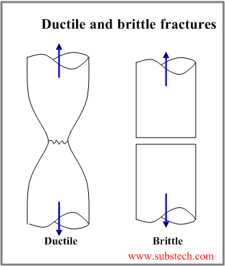 รูปการเปรียบเทียบวัสดุเหนียวกับวัสดุเปราะวัสดุที่มีความเหนียวจะยืดได้มากกว่าวัสดุเปราะ ก่อนที่วัสดุจะขาด