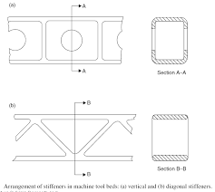 รูปการเตรียมการของฐานเครื่องมือกล a: แนวตั้ง และ b: ทำทแยงมุมให้เกิดความแข็ง