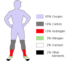 ร่างกายมนุษย์ประมาณร้อยละ 99 ประกอบขึ้นจากธาตุเพียง 6 ชนิด ได้แก่ ออกซิเจน, คาร์บอน, ไฮโดรเจน, ไนโตรเจน, แคลเซียม และธาตุอื่น ๆ แม้ว่าจะรวมกันเป็นสารประกอบต่าง ๆ นับพันชนิดก็ตาม แต่ก็จะมีเพียงหลัก ๆ ไม่กี่ตัว