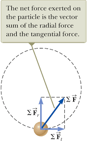 เพราะฉะนั้น แรงกระทำบนอนุภาคต้องมีทั้งองค์ประกอบในแนวรัศมี และในแนวสัมผัสกับวงกลม เพราะว่าความเร่งโดยรวมจะเป็น